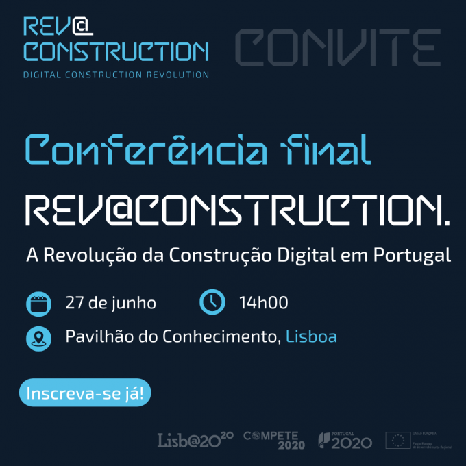 No próximo dia 27 de junho realiza-se o evento de encerramento do Projeto Mobilizador REV@CONSTRUCTION com a Conferência "A Revolução da Construção Digital em Portugal", às 14h00, no Auditório Mariano Gago do Pavilhão do Conhecimento, em Lisboa.