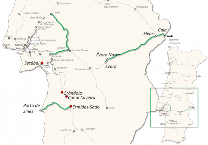 - Sines-Ermidas do Sado (Linha do Sul) + Canal Caveira + Grândola Norte (Linha do Sul)